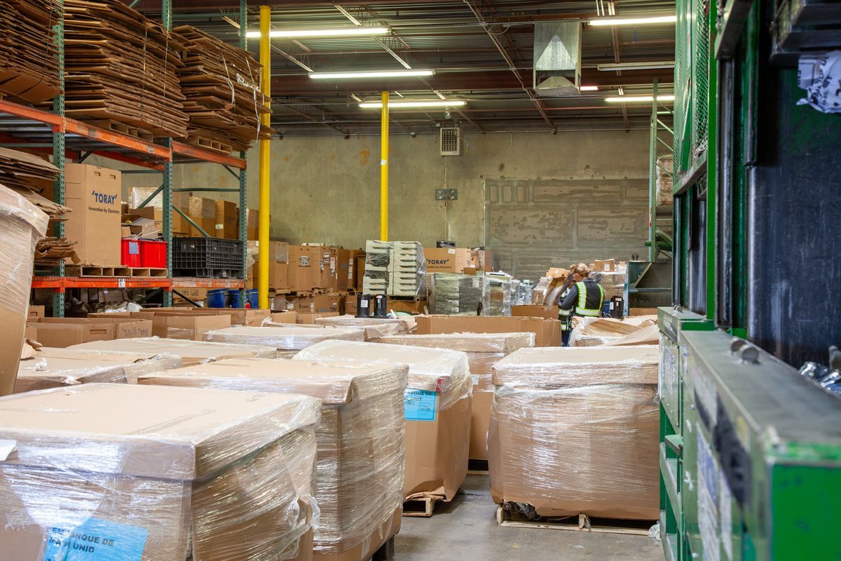 Fibers are segragated by type, baled, and sent to several paper mills across the country.
